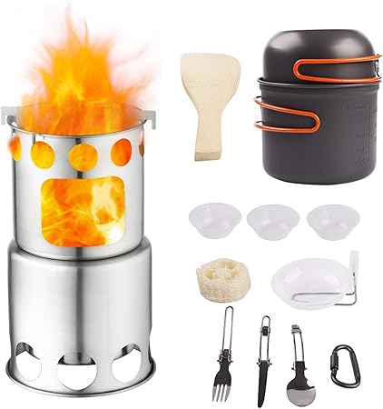 Qunlei 304 Stainless Steel Camping Cookware Set With Wood Stove Complete Lightweight Outdoor Camping Hiking Backpacking Cooking Picnic Cookware Mess Kit For 1 2 Adult Buy Online In El Salvador At Elsalvador Desertcart Com Productid from images-na.ssl-images-amazon.com
